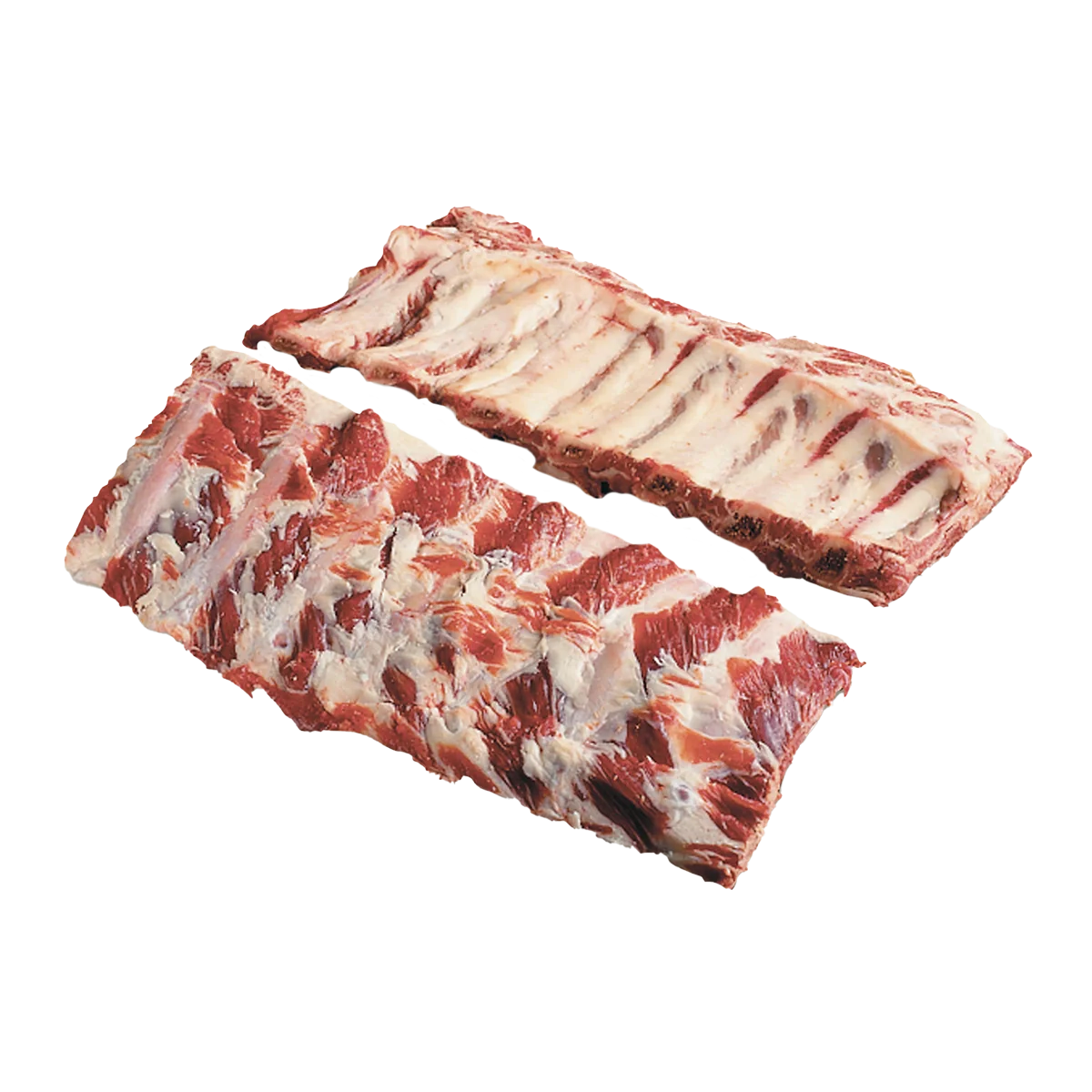 This cut is typically comprised of 7 rib bones and is known for its bold beefy flavor. While they may not be as meaty as short ribs, beef back ribs shine when cooked low and slow, making them ideal for smoking, barbecuing, or braising. The connective tissue and fat break down over time, resulting in juicy, fall-off-the-bone meat.