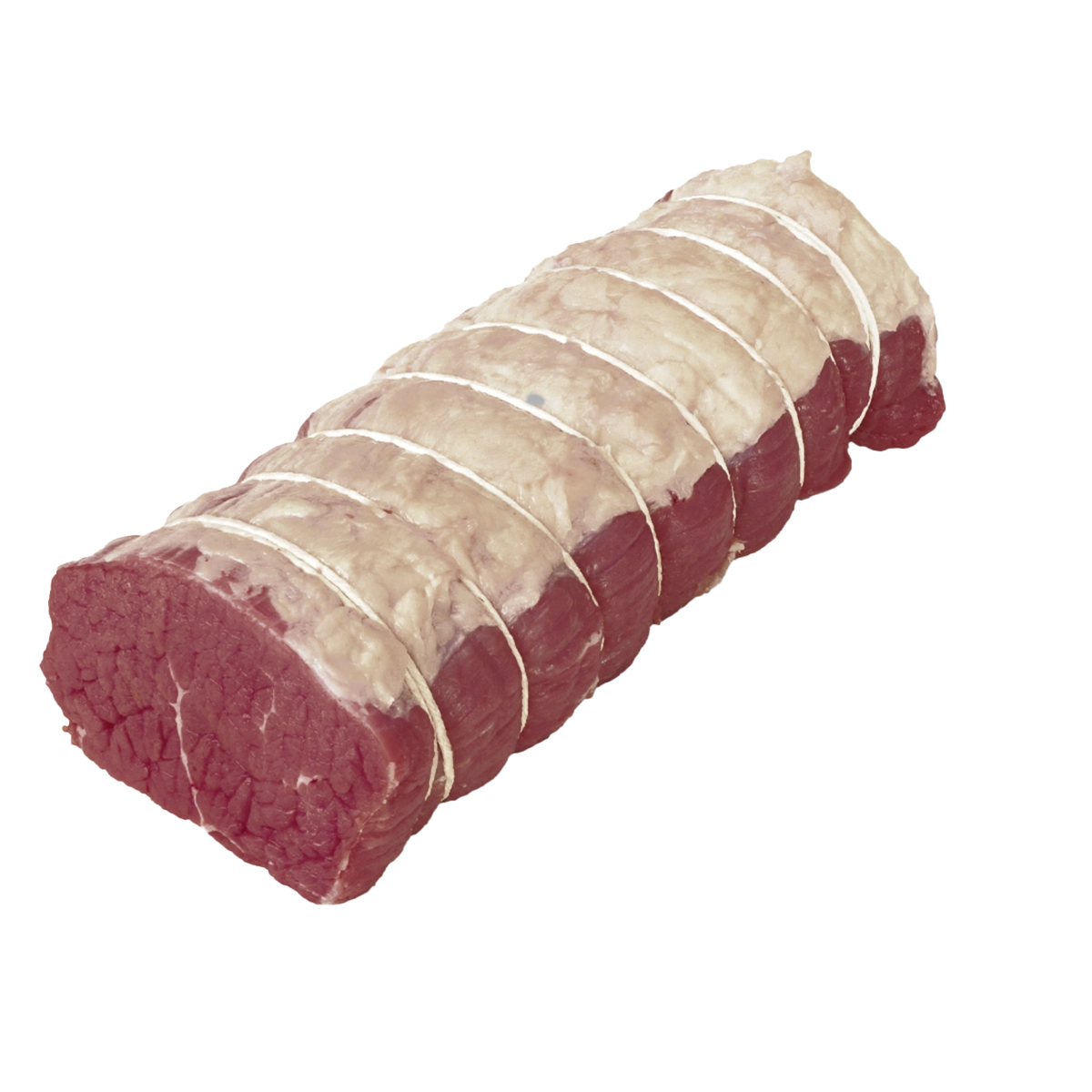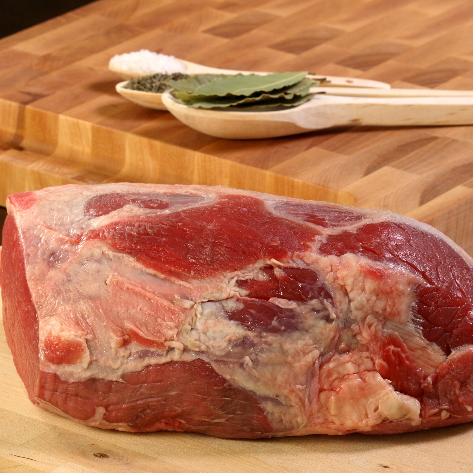 Eye of round roast is a lean cut from the hindquarters, known for its firm texture. It is best roasted slowly and sliced thinly against the grain.
