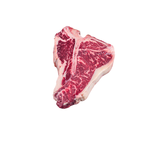 A Porterhouse steak is a premium, large bone-in cut that combines two of the most prized steaks in one — the tender filet mignon and the flavorful New York strip. Cut from the rear end of the short loin, it includes a generous portion of tenderloin on one side of the T-shaped bone and strip steak on the other, offering the best of both worlds.
