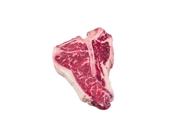 T-Bone Steaks are a classic and highly sought-after beef cut, featuring a T-shaped bone that separates two prized muscles: the tenderloin and the striploin (or New York strip). This cut offers the best of both worlds — the tenderness of the filet and the robust flavor of the strip — making it a favorite among steak lovers.
